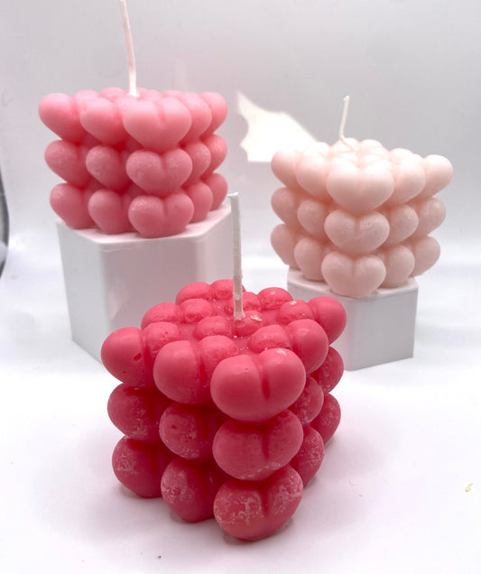 Hearts, tulips, and all things pink! Decorative Valentines Day Candles handmade using recycled candle wax. Support a woman owned, eco-friendly small business here!